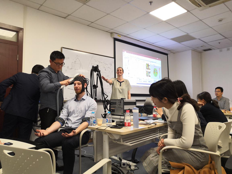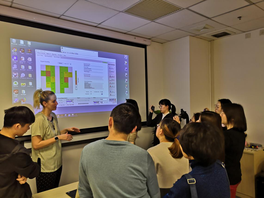 NIRX專業(yè)科協(xié)團隊從蒙太奇設(shè)計和電極帽準(zhǔn)備,實驗設(shè)計與同步/觸發(fā),受試者測量等所有科研遇到的環(huán)節(jié)一步一步細(xì)心講解與演示,以及瀚翔專業(yè)工程師與專業(yè)翻譯人員協(xié)助下,帶領(lǐng)學(xué)員分組實操,研究與操作知識樣樣Get。