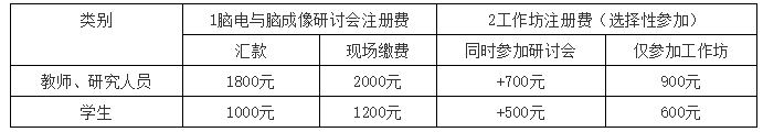 2)參加腦電與腦成像研討會和工作坊的注冊費為2500(教師匯款)或1500元(學生匯款);僅參加其中之一的,按照上表繳費。