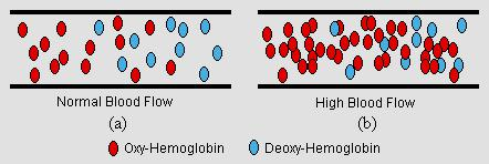 圖 1-1 激活(a)與靜息(b)兩種生理狀態(tài)下局部腦血流及血氧水平的變化