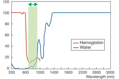 圖 1-2 水和血紅蛋白在近紅外波長范圍的吸收率