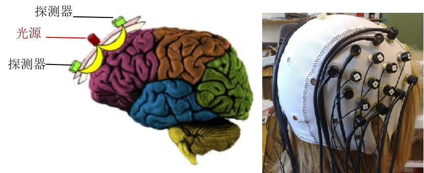 功能近紅外光譜成像技術(shù)(functional Near-Infrared Spectroscopy,fNIRS)主要利用多個波長的近紅外光與腦組織中生色團物質(zhì)之間的吸收和散射關(guān)系,考察特定狀態(tài)下腦組織中氧合血紅蛋白、脫氧血紅蛋白以及總血紅蛋白的濃度變化,進而間接考察神經(jīng)元的活動、細胞能量代謝以及血液動力學相關(guān)的功能,反映大腦的狀態(tài)與加工的過程。