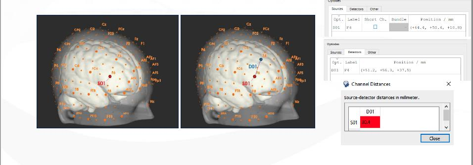 ? 設置光源/探測器布局;可以依照國際 10-20 系統布局,支持數字定位系統(Polhemus Patriot),支持圖形化顯示光源/探測器布局、支持 2D、大腦表面顯示方式