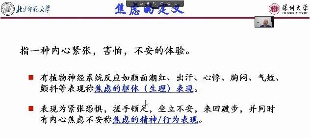 焦慮是一種內心、緊張、害怕不安的一種體驗。生理和心理都有明顯的病癥表現,如顏面潮紅、出汗、胸悶、氣短、顫抖等的軀體表現,以及緊張恐懼、搓手頓足、坐立不安、來回踱步、并伴有內心焦慮不安的行為表現。