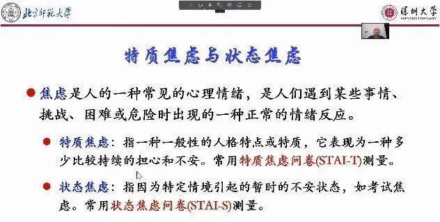 焦慮是人類的基本情緒之一,但過度焦慮會造成心理和身體的雙重損傷。物質焦慮是一種一般性的人格特定或特質,表現為一種或多或少持續性的擔心和不安。狀態焦慮是因為特定情境下引起的暫時的不安狀態,如考試焦慮、面試焦慮等。