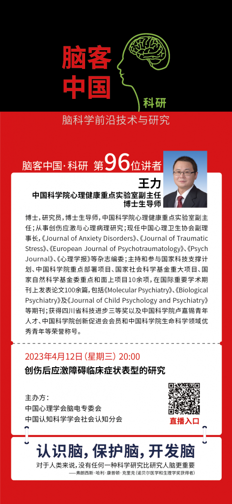 【直播預告】 本周三晚20點 王力:創傷后應激障礙臨床癥狀表型的研究