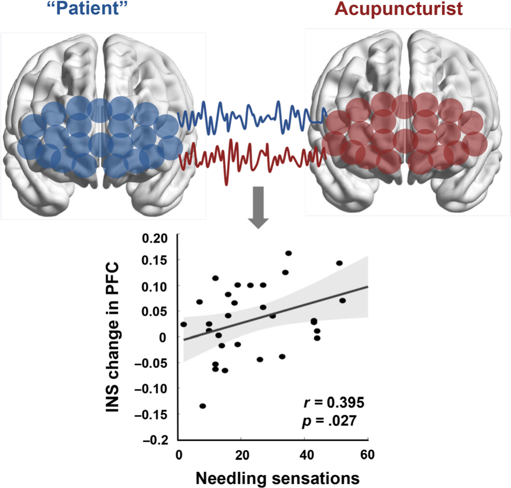 圖2 針灸期間針灸師與患者間的腦神經功能同步(INS)效應