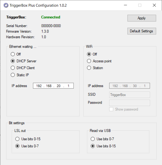 - Trigger Box Plus 默認使用自身作為 DHCP 服務器的以太網連接,客戶端可以通過新的 LAN 輸出直接連接到 Trigger Box Plus。此外,LSL 標記將只使用低 8 位,簡化了網絡配置過程。