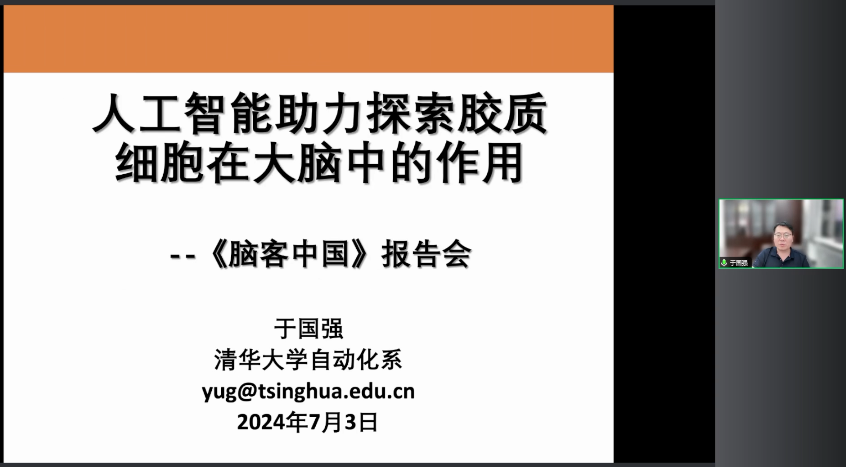 2024年7月3日晚20點,清華大學自動化系長聘教授于國強作為腦客中國科研第149位講者為大家帶來主題為《人工智能助力探索膠質細胞在大腦中的作用》的報告。以下內容節選自直播視頻: