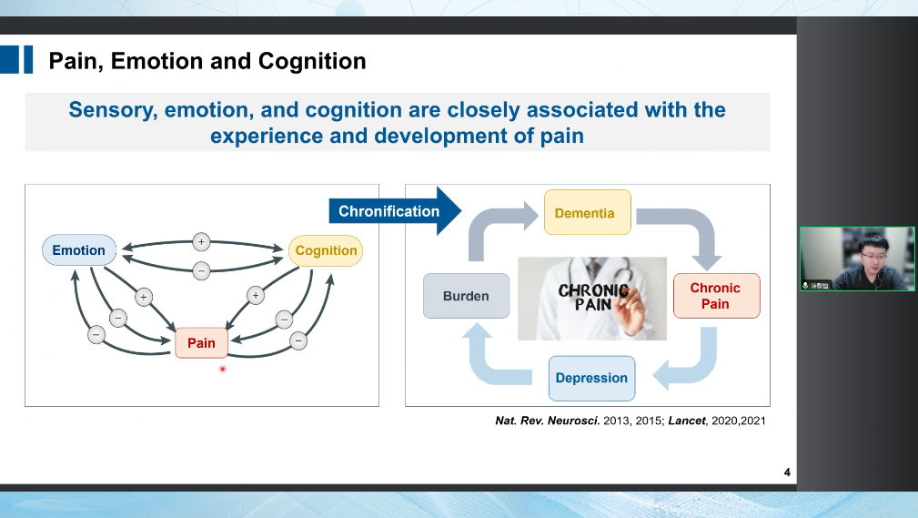 在我們自己的這個(gè)研究當(dāng)中,會(huì)發(fā)現(xiàn)其實(shí)疼痛的感覺、情緒和認(rèn)知三個(gè)維度是密不可分的,它們相互影響共同形成了一個(gè)非常復(fù)雜的生理現(xiàn)象。