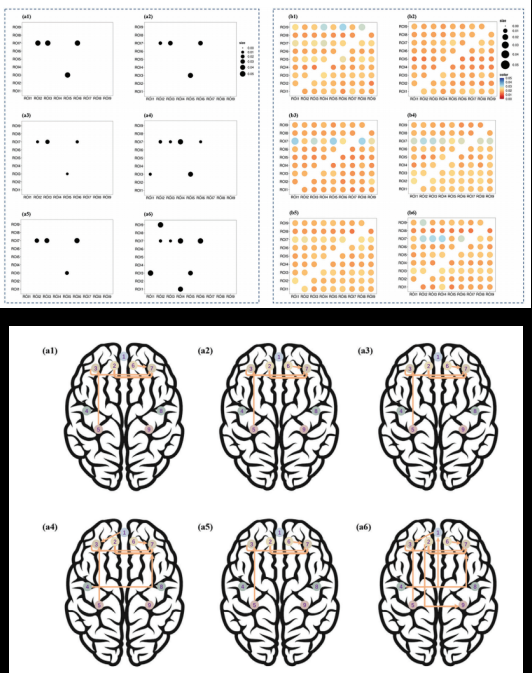 與SIT相比,MIC在干預前后顯著誘導了從ROI 1到ROI 3和從ROI 4到ROI 7的連接組;VIC在干預前后顯著誘導了從ROI 1到ROI 3、從ROI 2到ROI 9、從ROI 4到ROI 1以及從ROI 4到ROI 7的連接組(見圖4)。