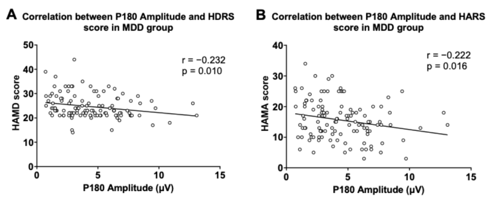 P180作為抑郁及焦慮癥狀的標(biāo)記物,P30作為認(rèn)知損傷的標(biāo)記物,可能反映了抑郁癥患者背外側(cè)前額葉皮質(zhì)的興奮-抑制不平衡。