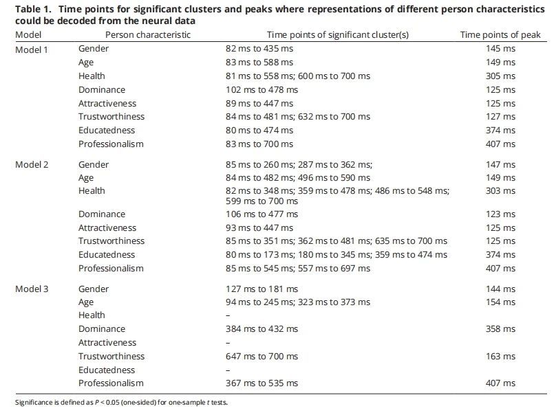表1:不同的人的特征表征可以從神經(jīng)數(shù)據(jù)中解碼的顯著簇和時(shí)間點(diǎn)