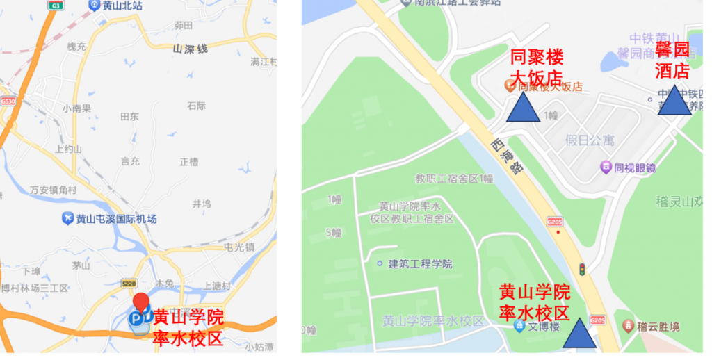 會議地點:黃山學院-率水校區:黃山市屯溪區西海路39號;
