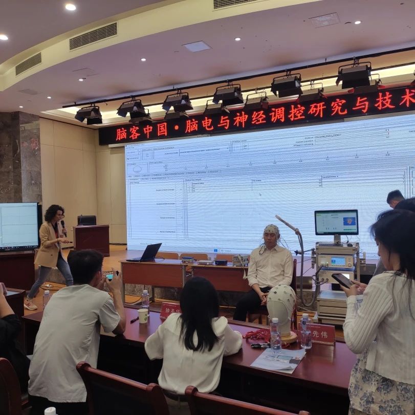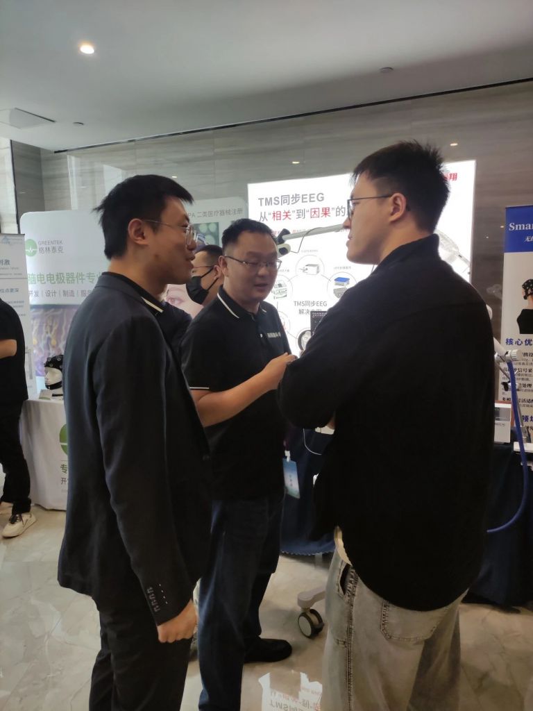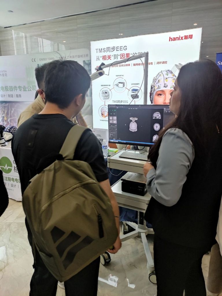 瀚翔腦科學(xué)作為此次會議贊助單位,攜自主研發(fā)的經(jīng)顱磁刺激儀、TMS導(dǎo)航系統(tǒng)、經(jīng)顱電刺激儀和便攜式BrainProducts actichamp plus 腦電、可穿戴鹽水腦電X.ON參加此次會議,眾多學(xué)者、老師和學(xué)生前來參觀、互動、交流。