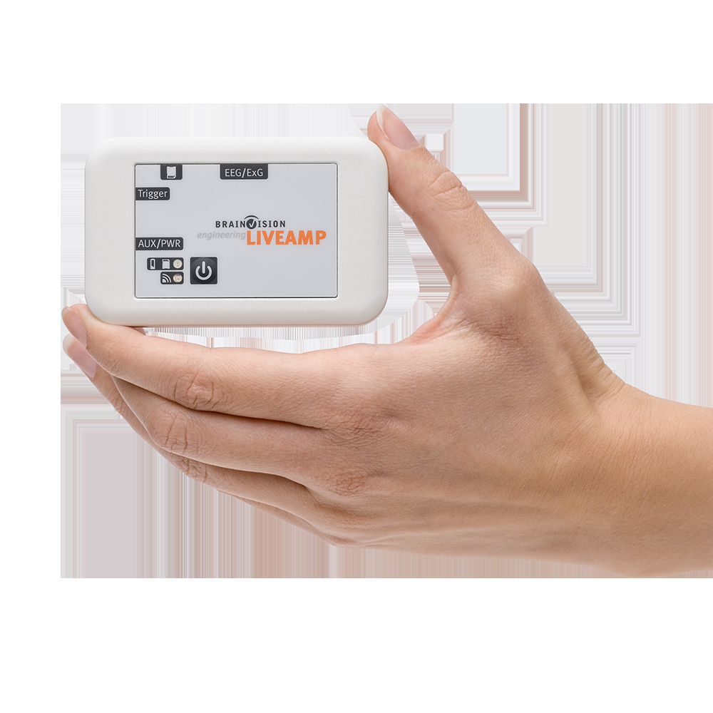 LiveAmp腦電采集系統的放大器重量僅60克(約銀行卡大小),可直接佩戴于身體,徹底擺脫傳統設備的線纜束縛。支持8/16/32導聯三種模塊化配置,滿足從基礎研究到高密度采集的多元需求 。