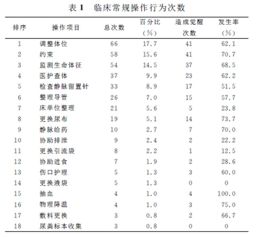 信息來源:金蕓. 操作行為致重癥監護室患兒睡眠剝奪的現況調查[A]. 中華醫學會、中華醫學會急診醫學分會(Chinese Society for Emergency Medicine).中華醫學會急診醫學分會第17次全國急診醫學學術年會論文集[C].中華醫學會、中華醫學會急診醫學分會(Chinese Society for Emergency Medicine):,2014:1.