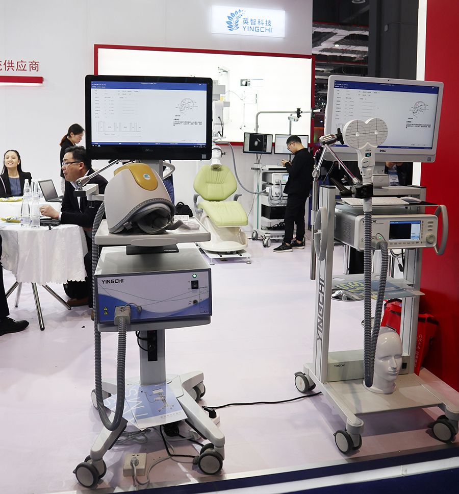 國際專員講解經(jīng)顱磁神經(jīng)導(dǎo)航系統(tǒng),精確定位線圈在治療時(shí)對應(yīng)大腦腦區(qū)位置,結(jié)合全自動(dòng)機(jī)械臂全程追蹤線圈位置,治療具有高效性。