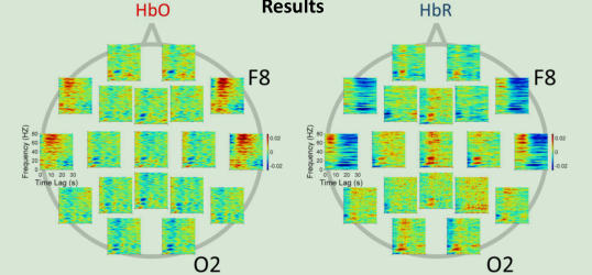 該論文使用全腦近紅外測量系統(tǒng)(19光源和19探測器)布置在國際10-20系統(tǒng)中(FP1, FP2, F4, C4, P4,O2, F8, T4, T6, Fz, Cz,Pz, F3, C3, P3, O1, F7, T3, and T5),是一種全新的近紅外功能成像測量研究,以往近紅外結(jié)合腦電測量往往只測量一個區(qū)域或者幾個電極點,沒有深入研究出腦電和近紅外結(jié)合的深入范式。